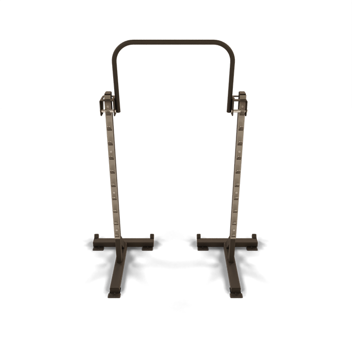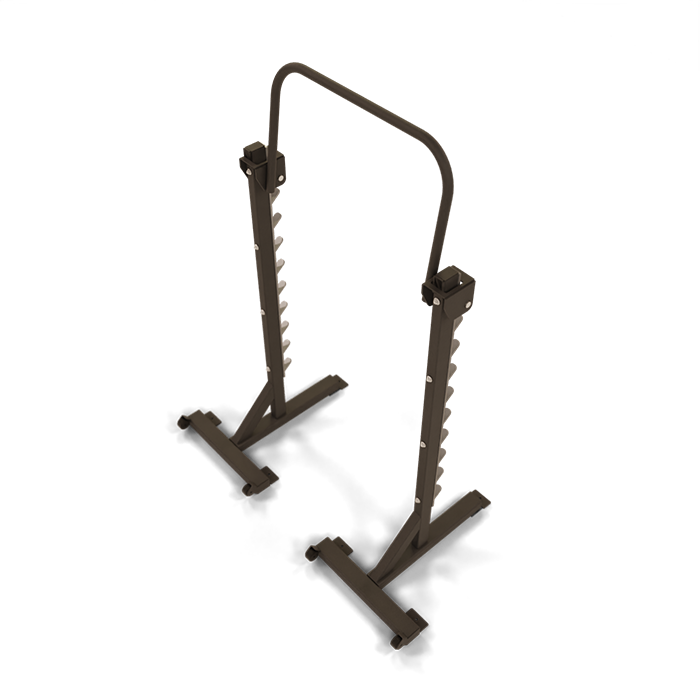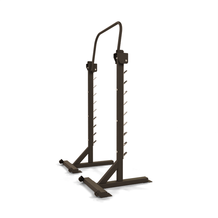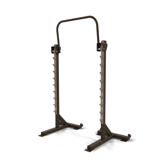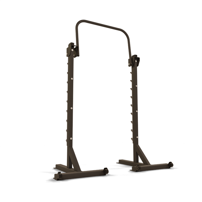 The Freestanding Squat Stand from Power Lift is a deluxe piece of fitness equipment that is designed to build strength in a versatile and efficient way. This piece of equipment is meant to handle squats without taking up the space of a normal power rack. Chin ups, bench movements or squats can be taken from this squat rack.