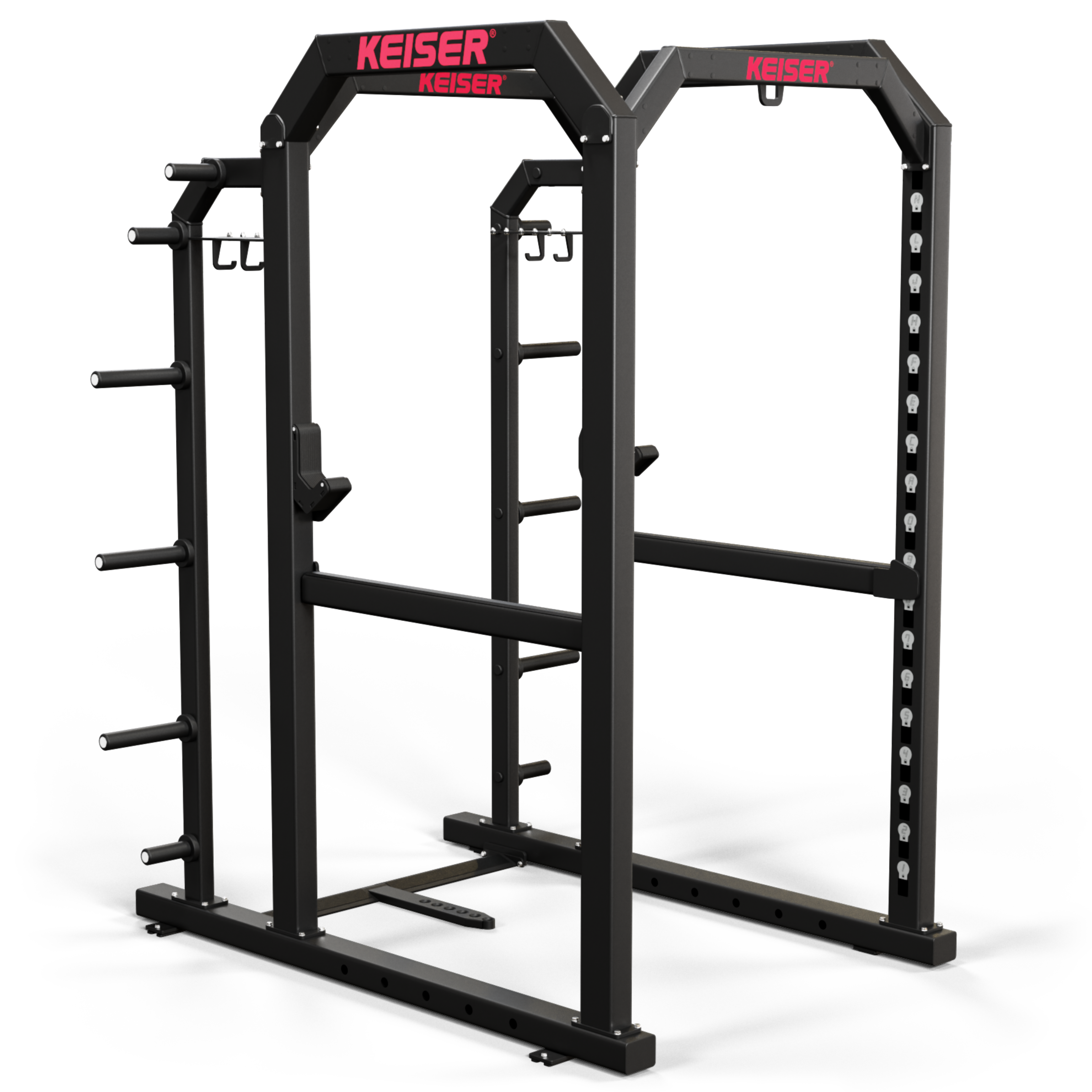 All Keiser patented hybrid Racks combine Keiser Dynamic Variable Resistance and iron weight resistance. Keiser Dynamic Variable Resistance pulls straight down on the bar (just like gravity) and follows the bar as it moves horizontally. You can train at any speed, from controlled to explosive, developing Power and Stability.